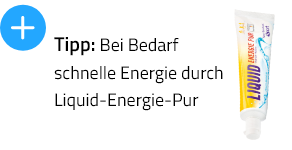 Das Liquid-Energie-Pur ist mein Lieblingsprodukt, weil es mir vor dem Rennen sehr schnelle und vor allem gute/nötige Energie gibt.