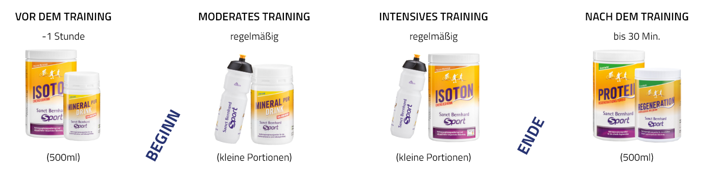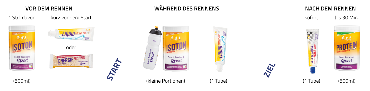 Durch den intelligent abgestimmten Ausgleich von Wasser, Salz und Kohlenhydraten kann das volle Leistungsvermögen mit unseren Empfehlungen abgerufen werden.