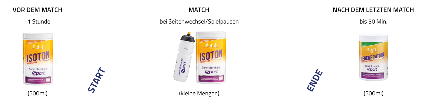 Achte vor dem Match und während der Spielunterbrechungen auf eine konstante Versorgung mit einem geeigneten und gut verträglichen isotonischen Sportgetränk.