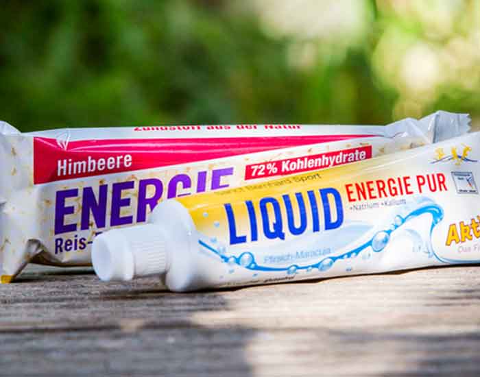 Die extra für hohe Anstrengungen entwickelten Powergels können ohne zu kauen konsumiert werden. Im Vergleich zu fester Nahrung wandern die Kohlenhydrate dadurch schneller in die Muskeln und sind somit auch ein perfekter Retter bei einem Hungerast oder Leistungseinbrüchen. Ein weiteres Plus: In der Regel sind die Kohlenhydratkonzentrate mit Natrium angereichert, das über den Schweiß verlorengegangenes Salz ausgleicht und damit Krämpfen vorbeugen kann. Allerdings müssen zähflüssige Gels mit viel Wasser nachgespült werden. Alternativ werden zwischenzeitlich flüssigere und direkt trinkbare Varianten angeboten, die den schnellen Gebrauch selbst unter hoher Belastung erleichtern. So haben Trinkgels zum Beispiel beim Lauf, auf dem Mountainbike oder im Ballsport klar die Nase vorn. Zu prüfen ist die individuelle Verträglichkeit. Beispielsweise können größere Gelmengen oder mit Fruktose angereicherte Produkte leicht Magen-Darm-Probleme hervorrufen.